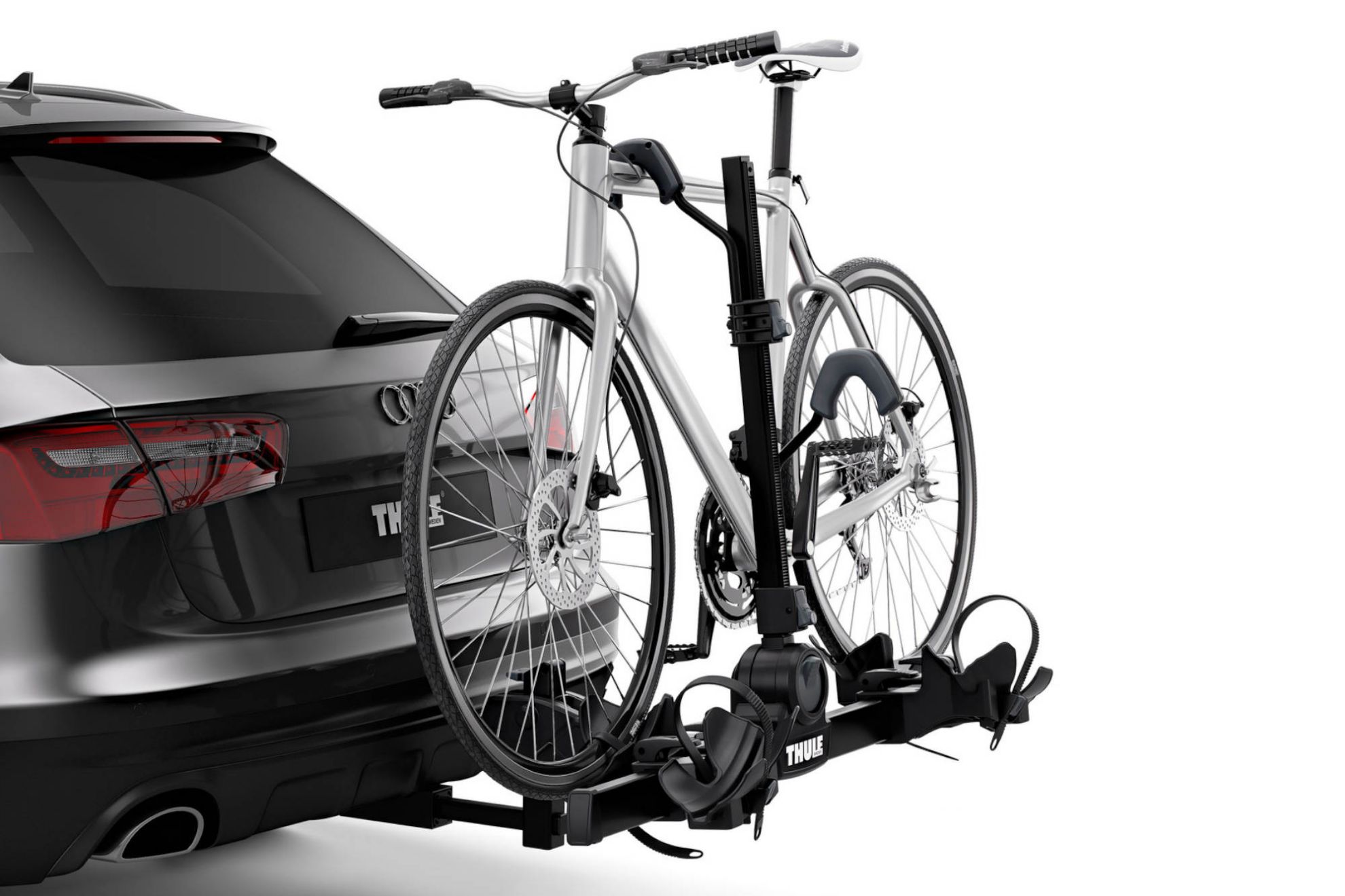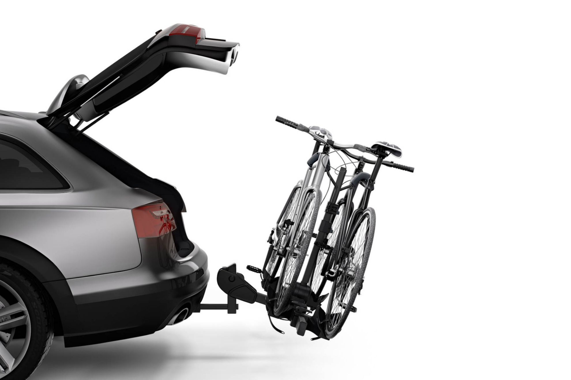 El Thule DoubleTrack es un portabicicletas para dos bicicletas instalado en el enganche